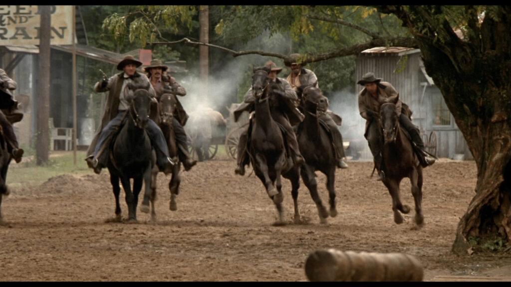 Hill-nek sok fejtörést okozott, hogy kellően drámai ívet adjon a Keach fivérek forgatókönyvének, mert az konkrétan négy részre osztja föl a cselekményt a klasszikus hármas tagolás helyett. A kvázi csúcspont után nem szoktunk még tovább menni, de mivel a film megpróbálja az egész Jesse James történetet alig száz percbe belesűríteni, így bejön a képbe a Ford fivérek, akik végül végeznek a legendás bandavezérrel. Viszont ez az utolsó negyedóra odacsapott utózöngeként hat, nem mindent letaroló drámai végnek. Emlékszünk mekkora ereje volt annak, amikor Andrew Dominik 2006-os változatában Brad Pitt felmászott megigazítani a képet majd jött a gyilkos golyó? Mert ott több mint kétórás megágyazása volt annak az árulásnak.